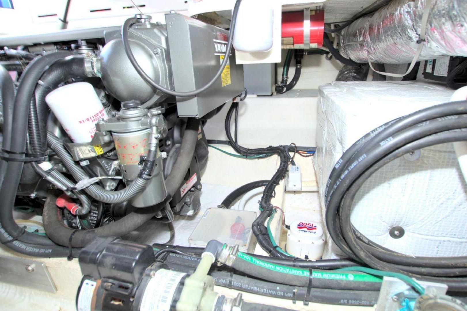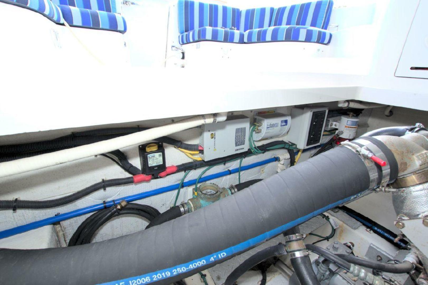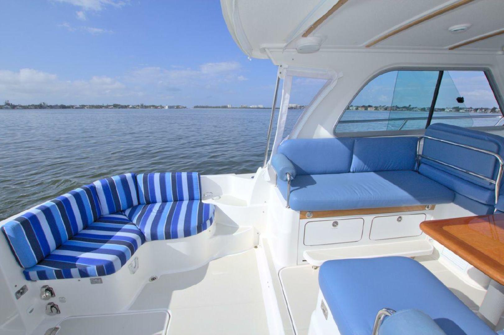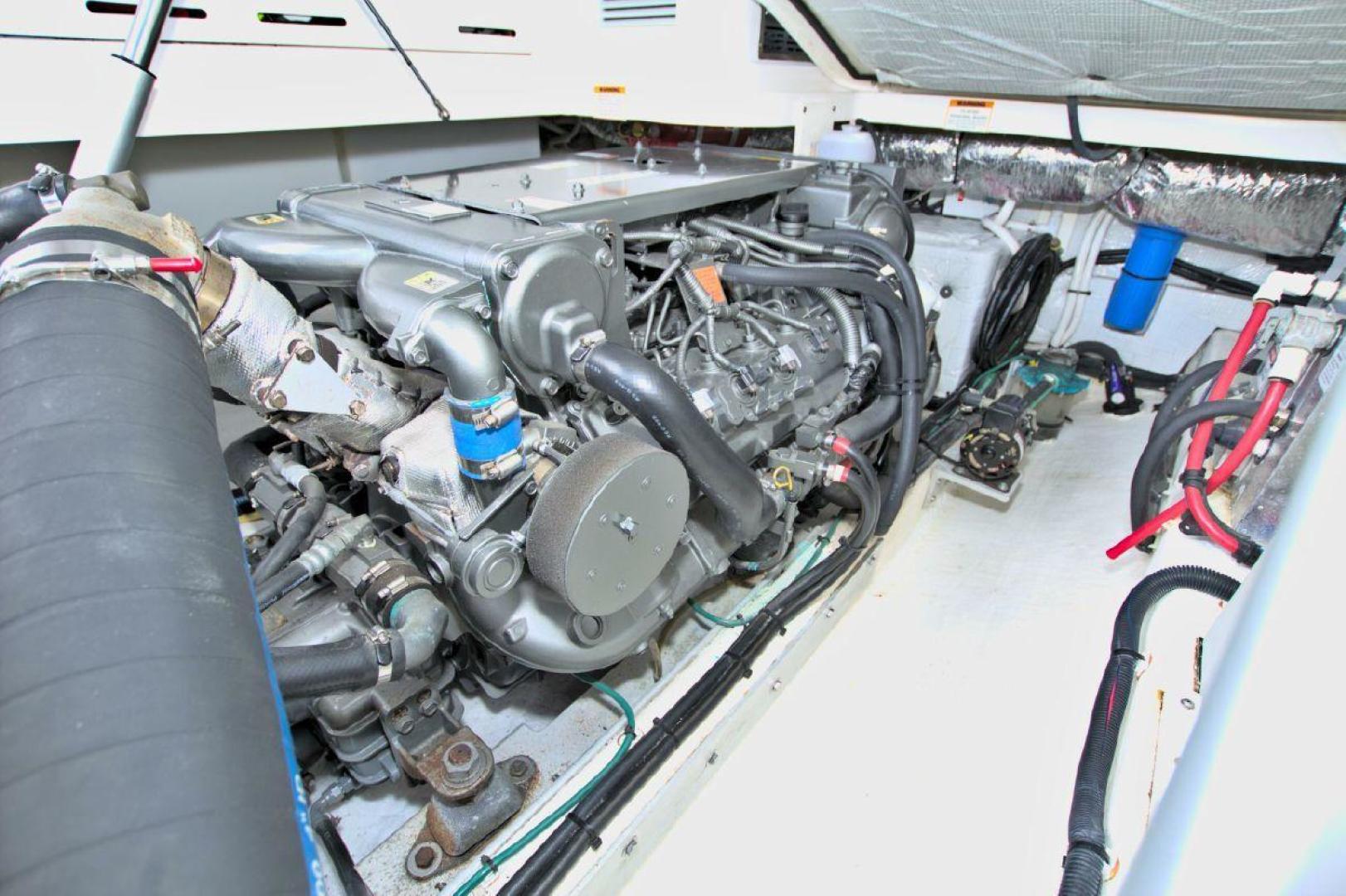 This ONE OWNER boat features attractive "Stars and Stripes" Awlgrip, Blue hull sides that make it stand out from the rest. It also comes optioned with the larger Yanmar 8LV 370hp engine with just 235 hours, ensuring that you'll have all the power you need to cruise and explore.