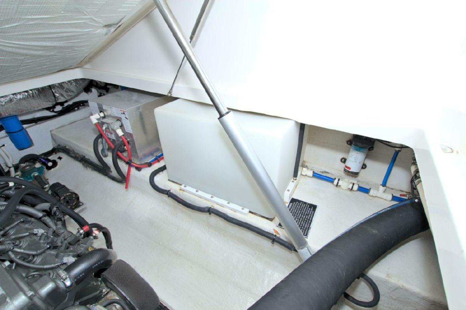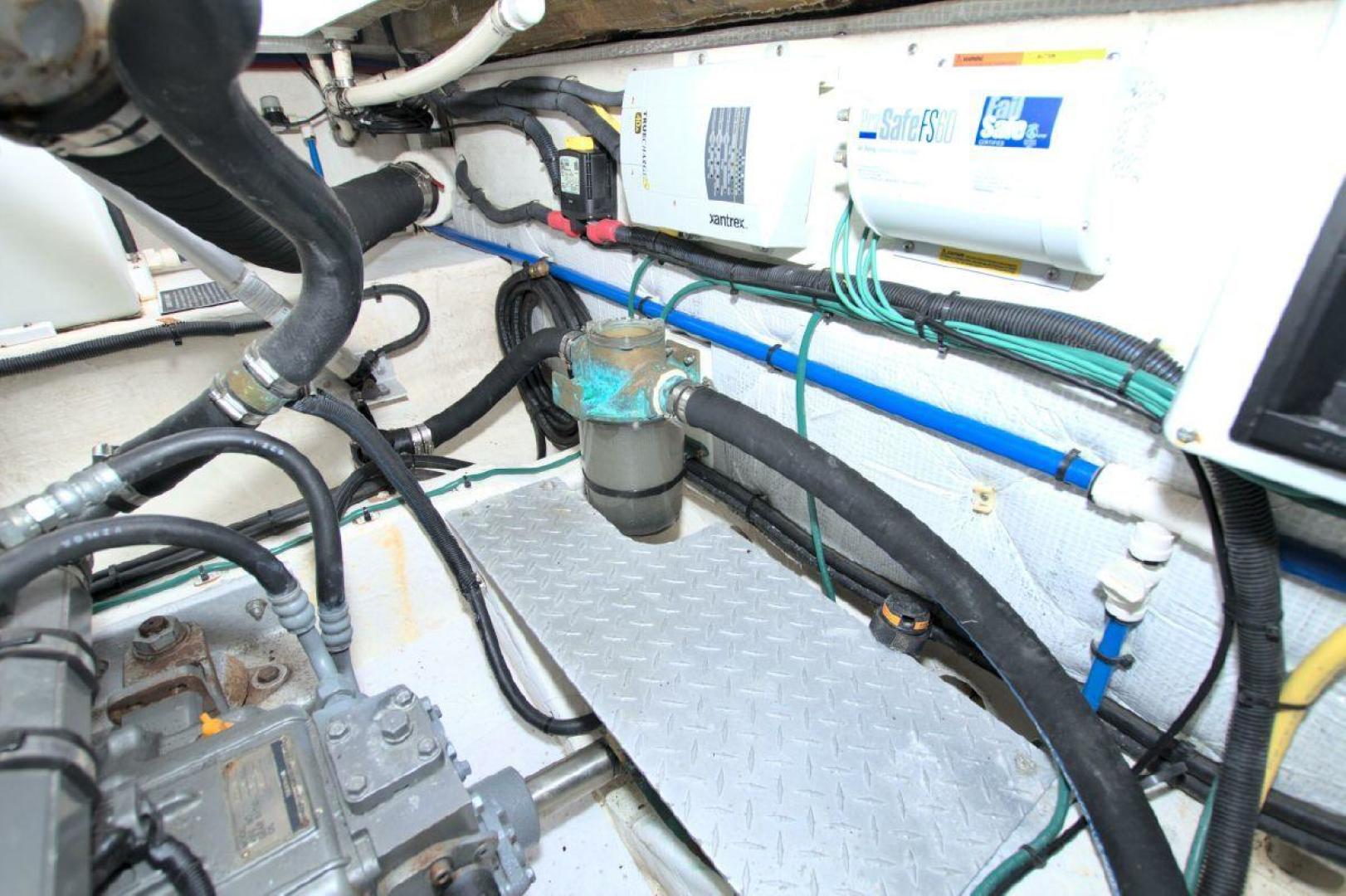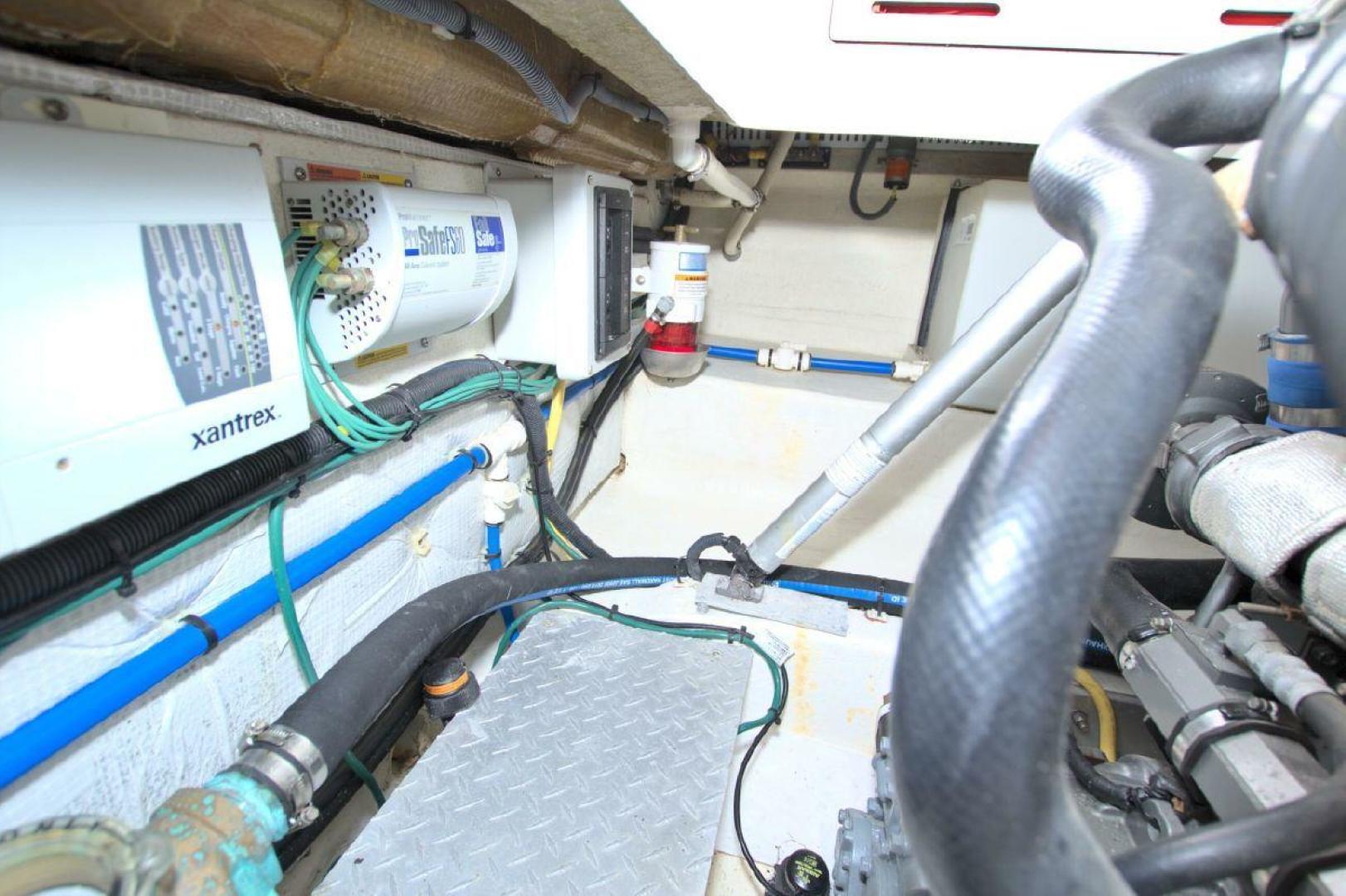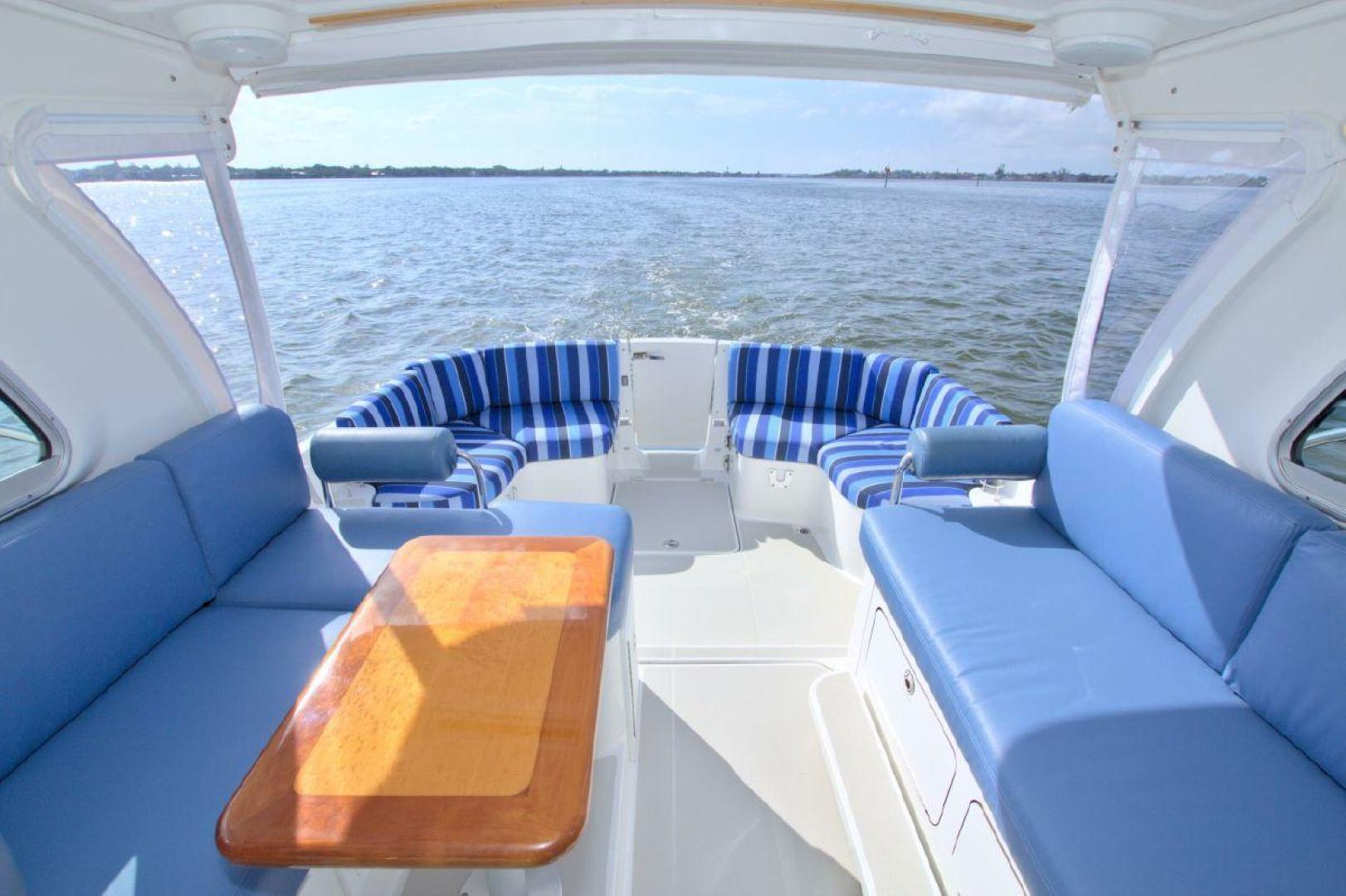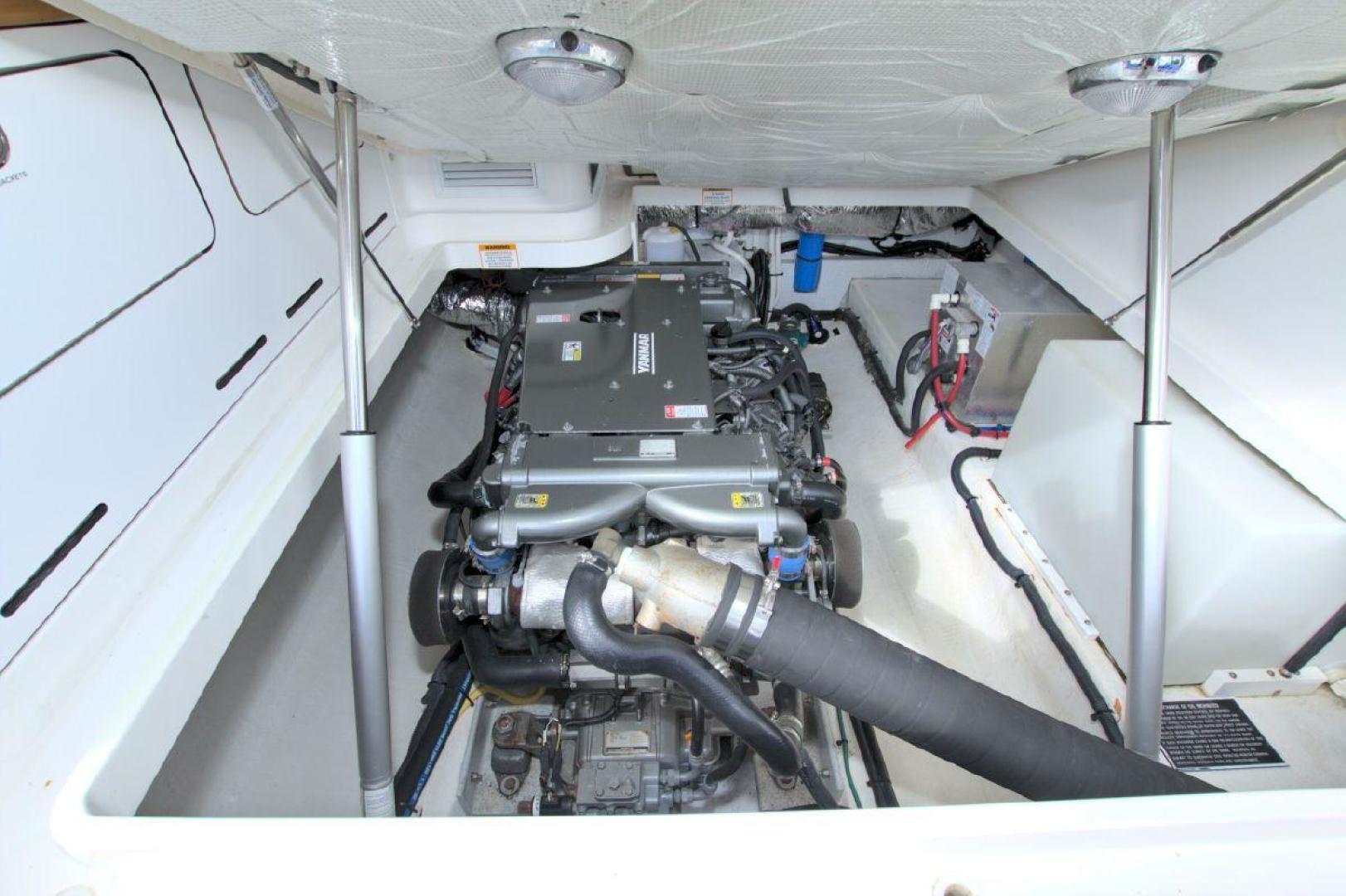 This ONE OWNER boat features attractive "Stars and Stripes" Awlgrip, Blue hull sides that make it stand out from the rest. It also comes optioned with the larger Yanmar 8LV 370hp engine with just 235 hours, ensuring that you'll have all the power you need to cruise and explore.