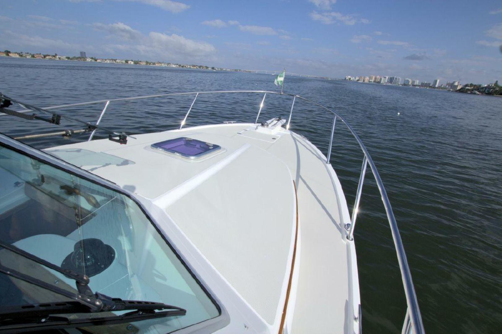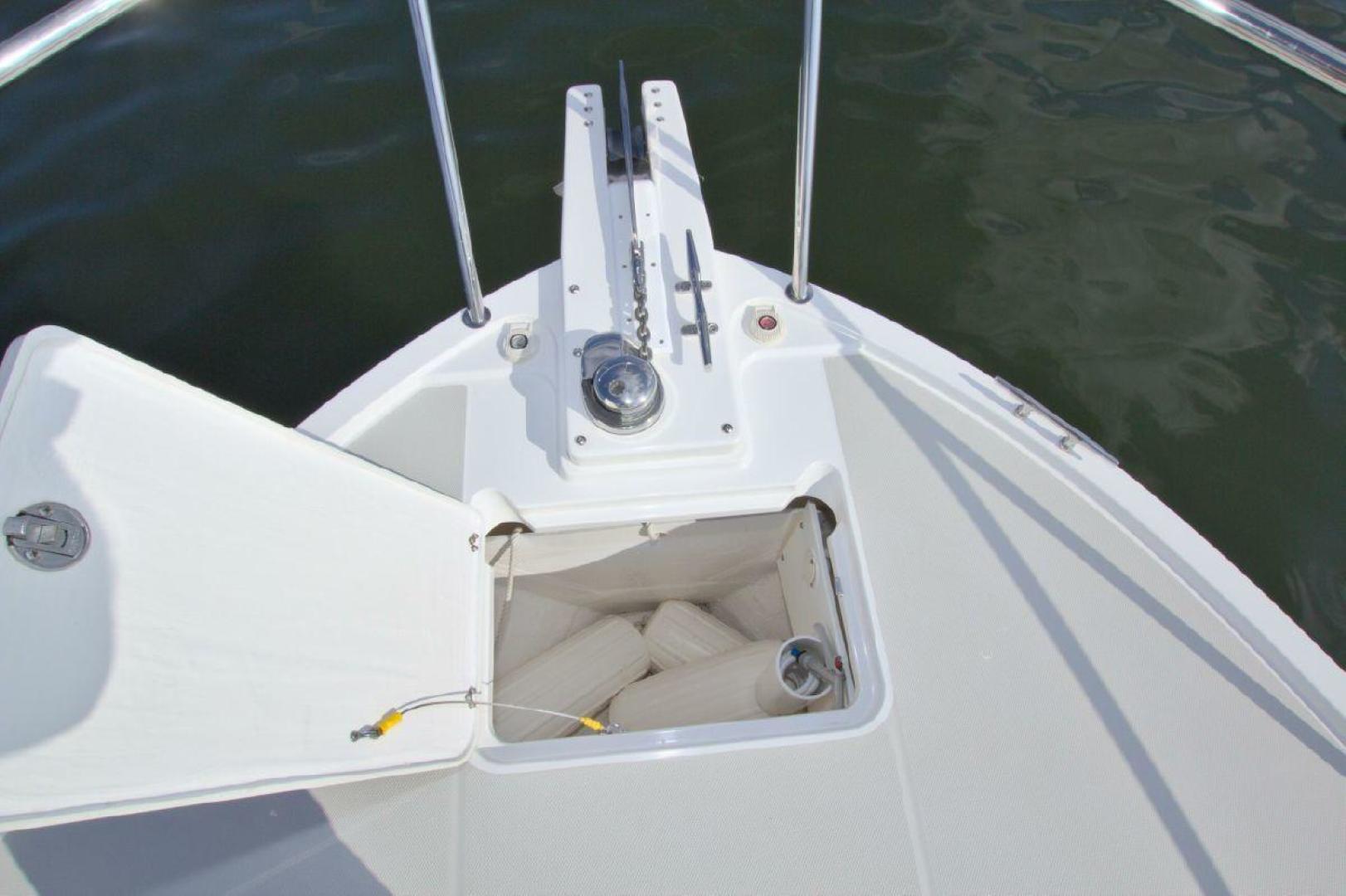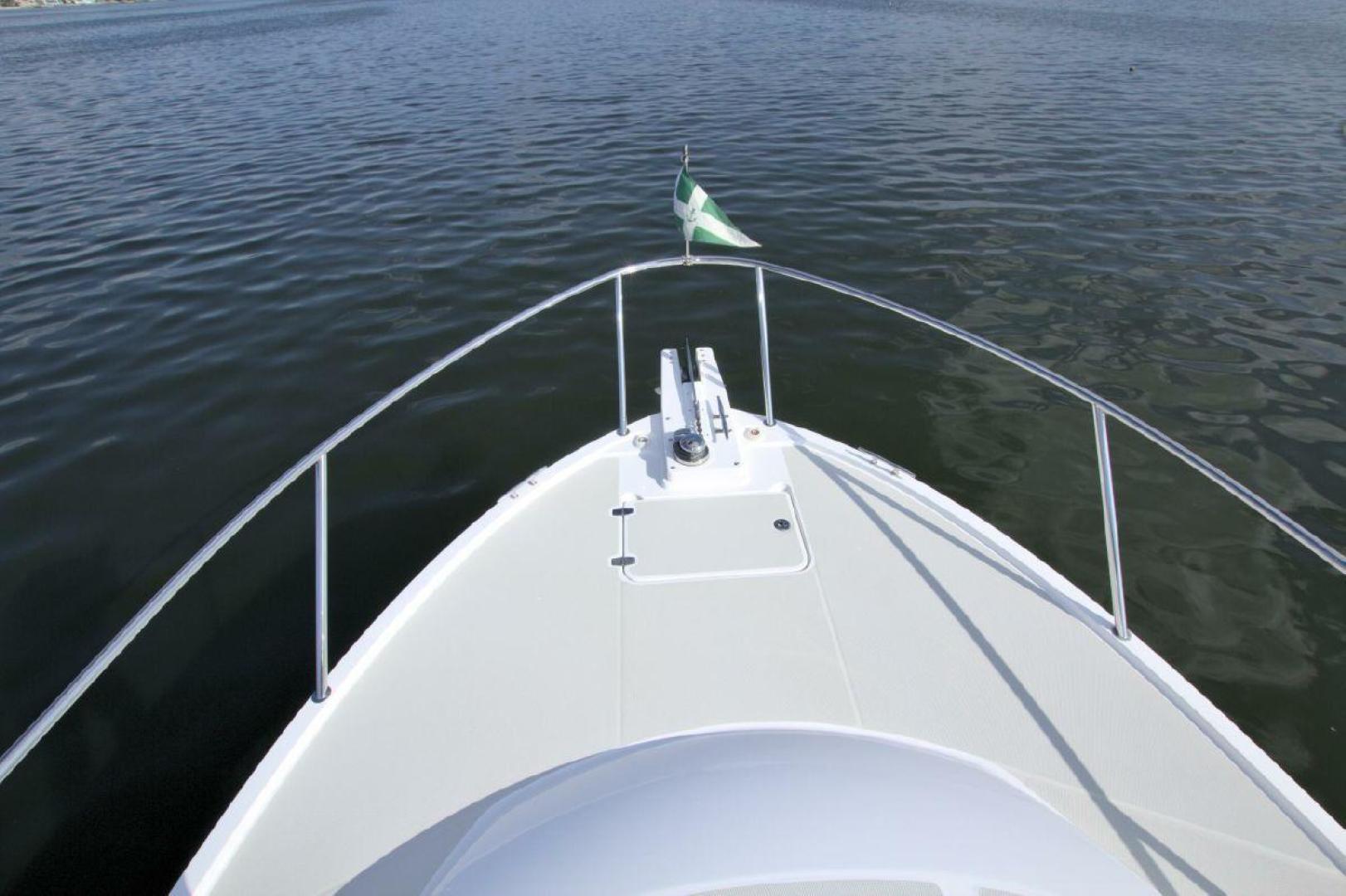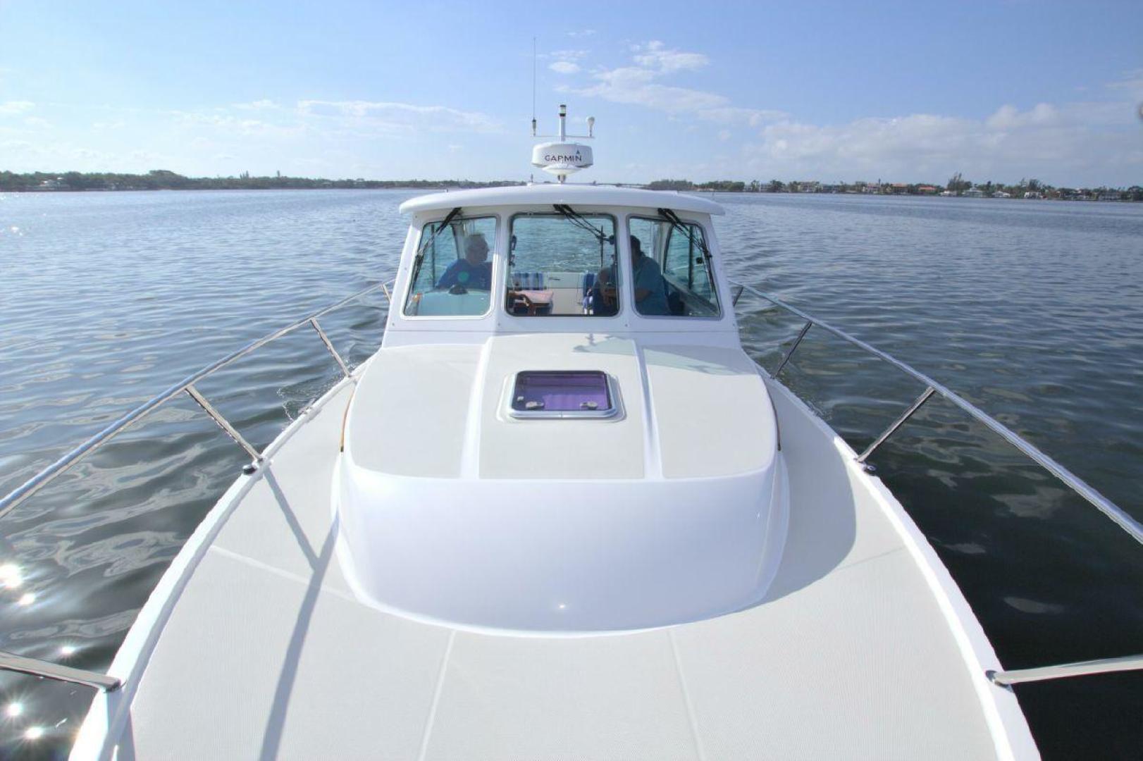 This ONE OWNER boat features attractive "Stars and Stripes" Awlgrip, Blue hull sides that make it stand out from the rest. It also comes optioned with the larger Yanmar 8LV 370hp engine with just 235 hours, ensuring that you'll have all the power you need to cruise and explore.