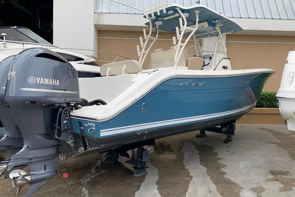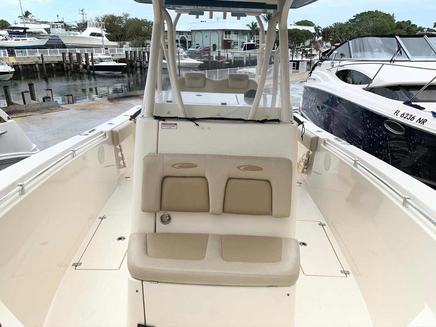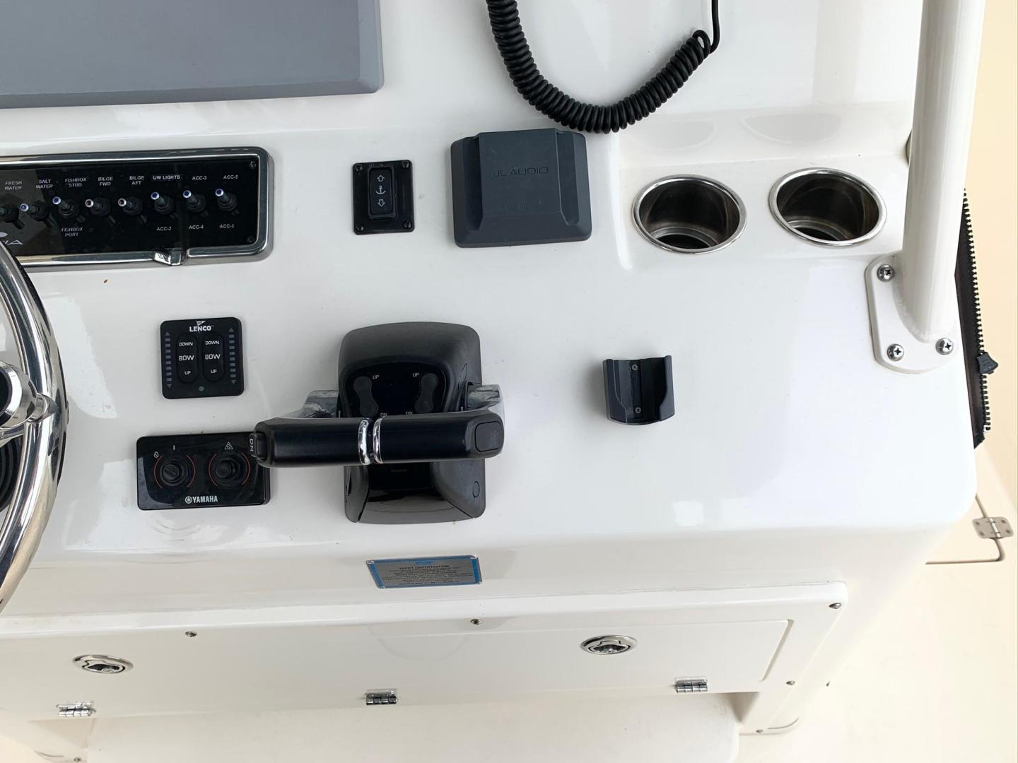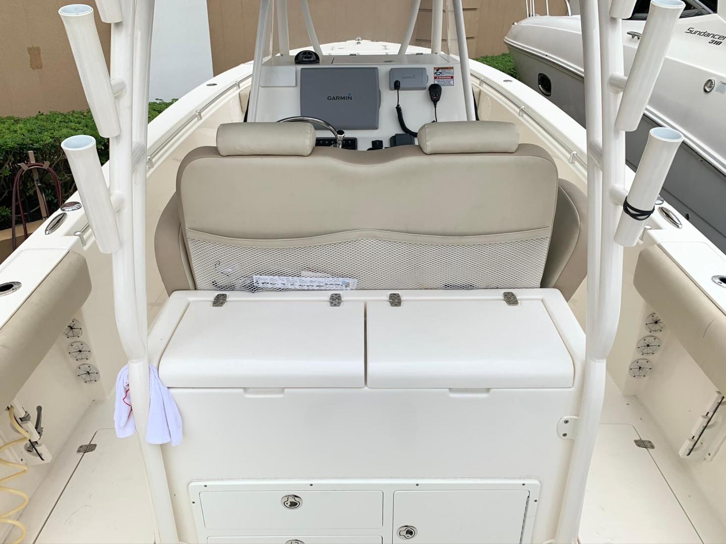The Cobia 296 CC is designed big to handle any conditions Mother Nature throws its way. It also fishes big with twin 28 gallon livewells and a cavernous cockpit with flip down aft seating and two in-deck 64″ macerated fishboxes. All the lures, leaders and terminal gear you own will fit neatly into the tackle organizers in the leaning post and console and your dead baits will be kept fresh and ready for rigging in the two insulated boxes in the tackle station.