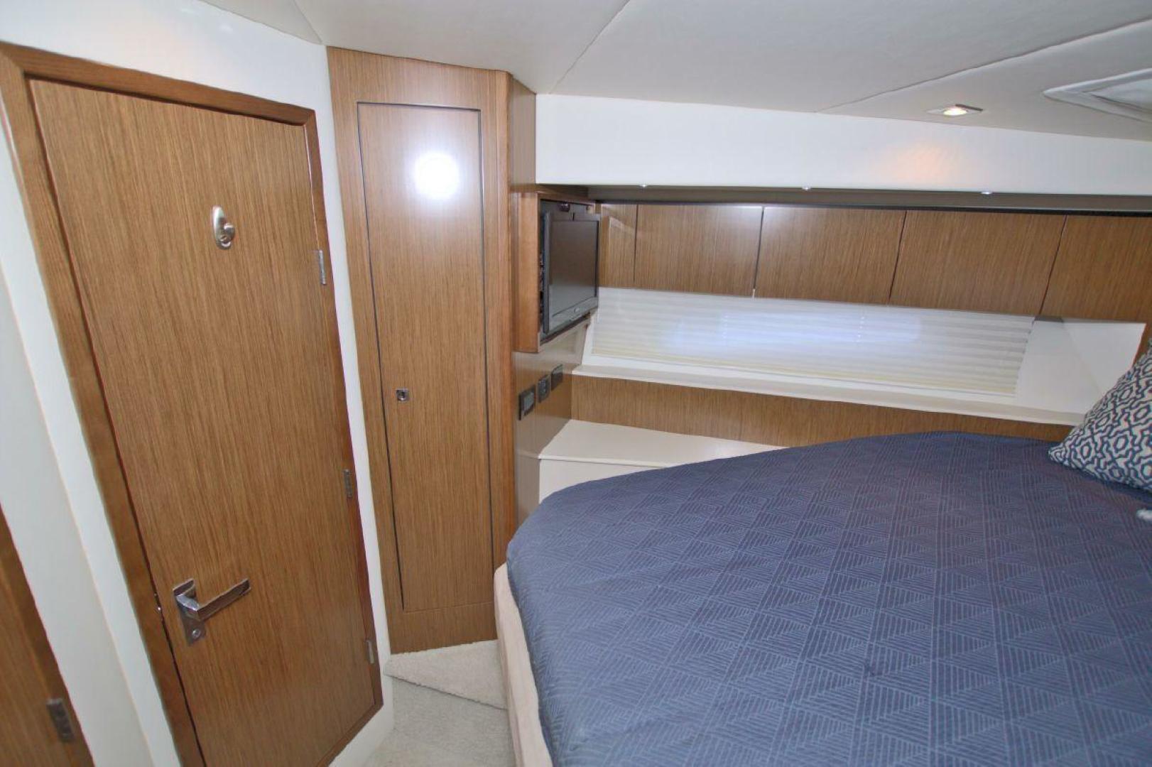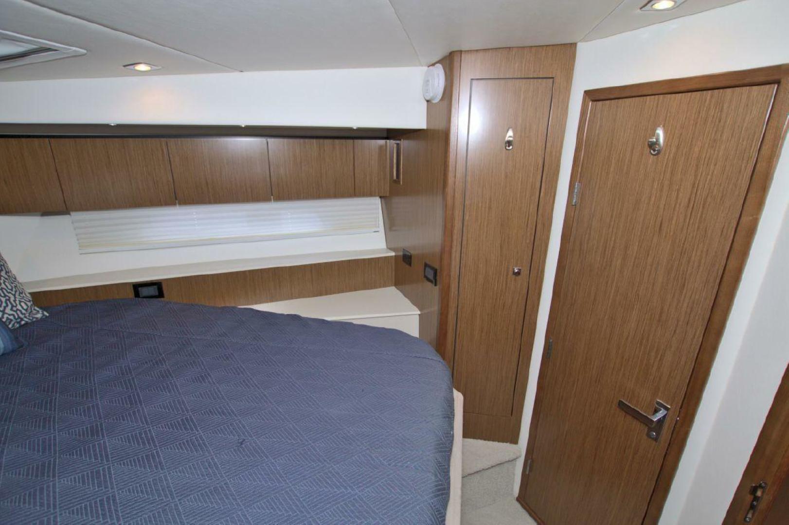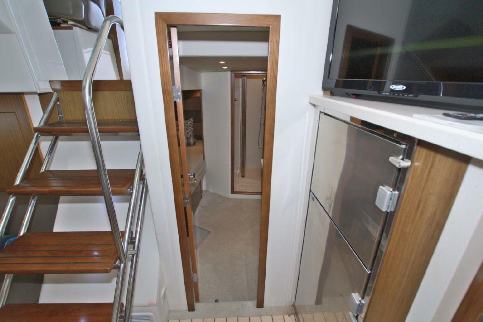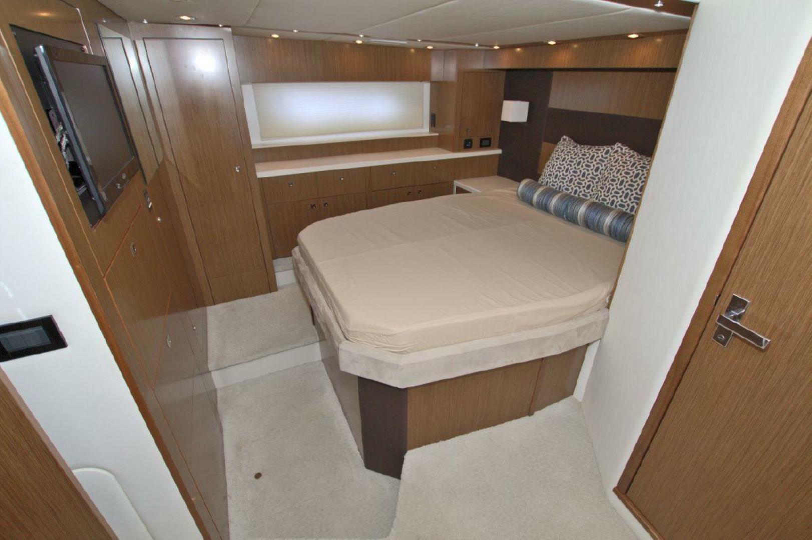 Entry to the the owners private full beam stateroom is aft the Salon stairs.