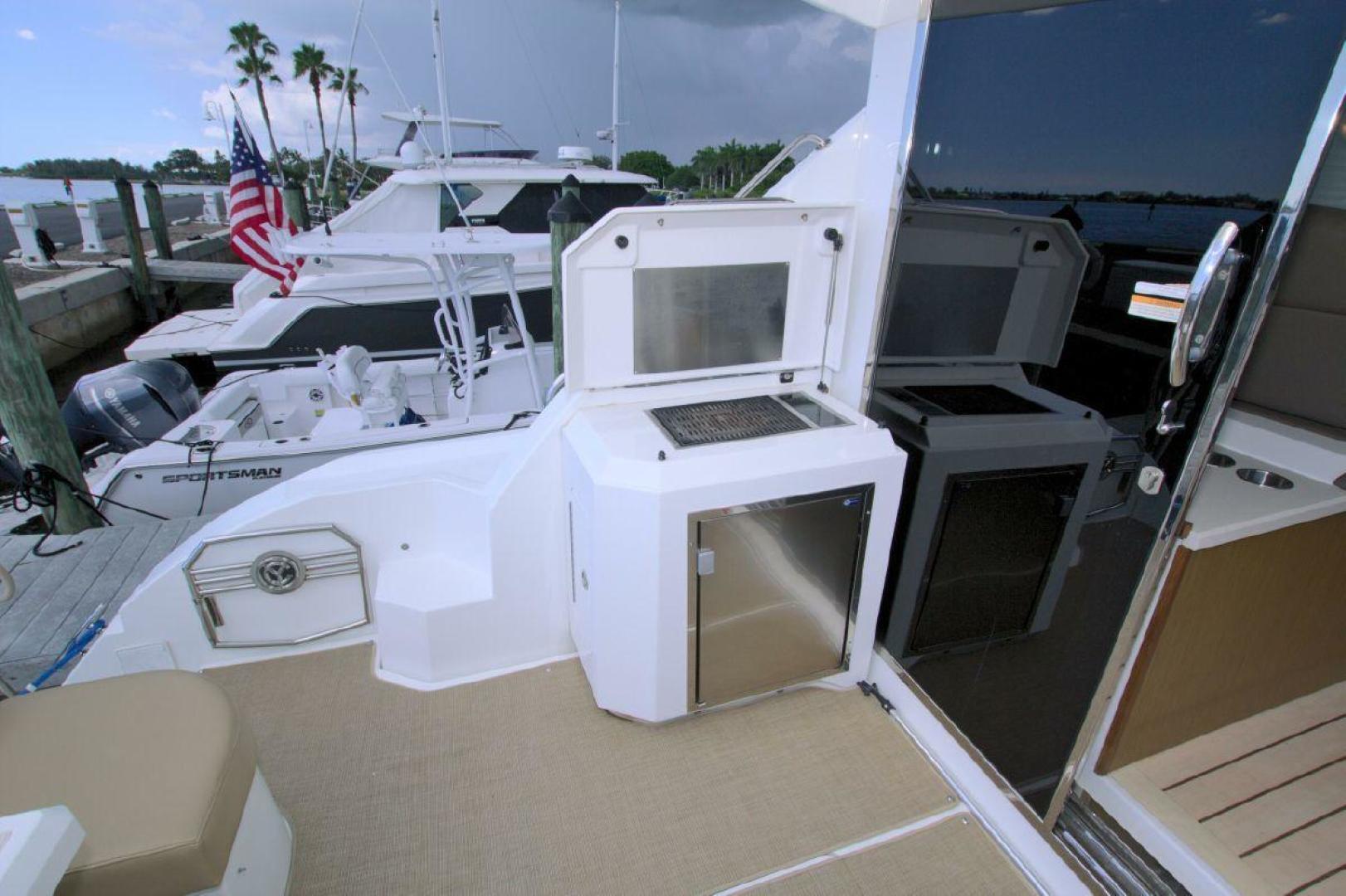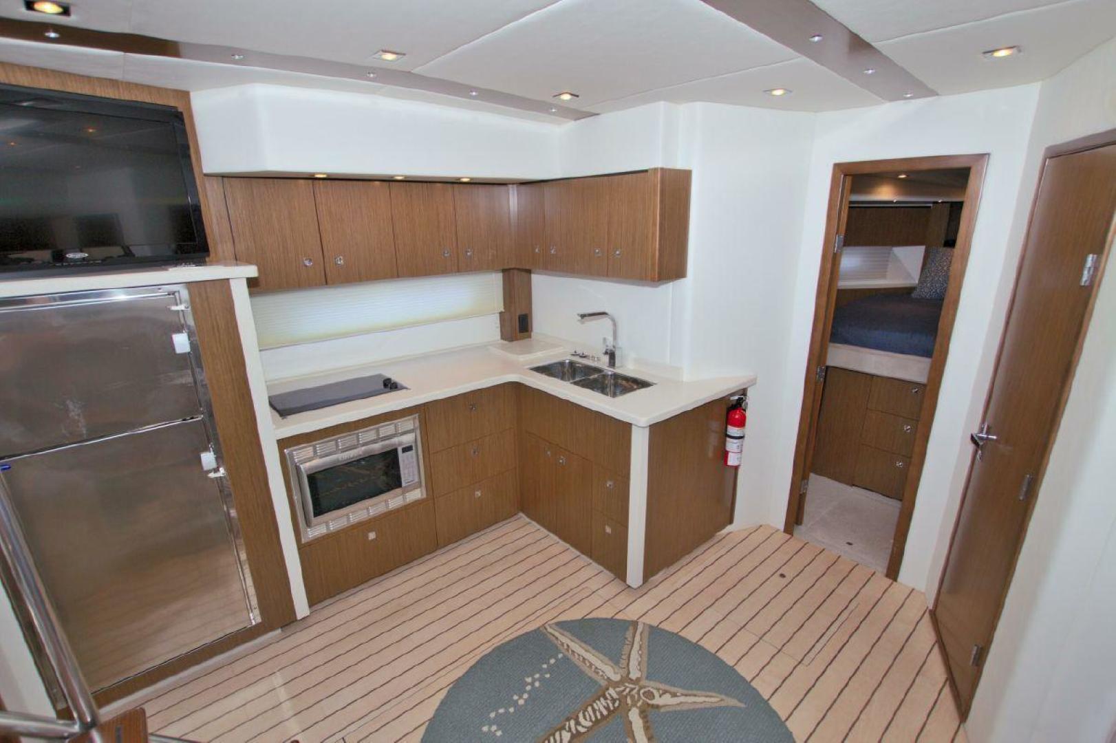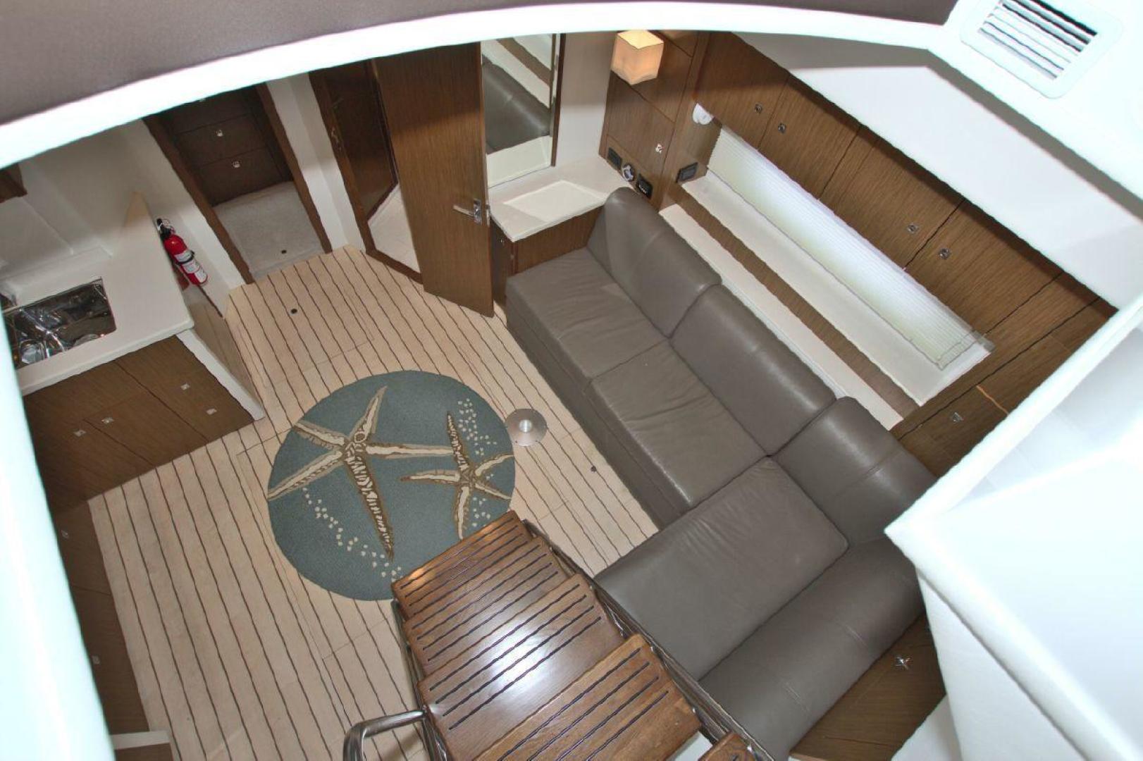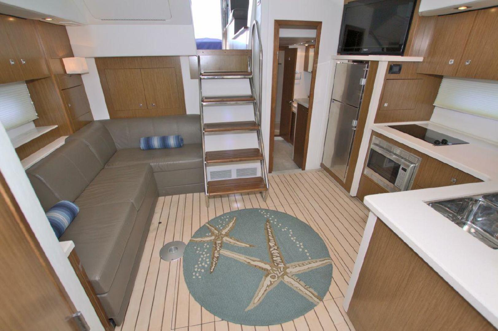 The Innovative "Double Salon" layout stands out in the Industry for forging the way maximum accommodations can be built around the pod drive configuration. The Cantius set the trend in modern boat design. Notable is the height in both Salons and even the engine room. The galley down, second salon, is open to the helm giving a cathedral effect and allowing more light to the interior than you will find on any other Express Cruiser. A 6' sliding glass roof, open windows and triple sliding glass doors have a 360 degree view and continue the emphasis on light and space and bring the outside in.