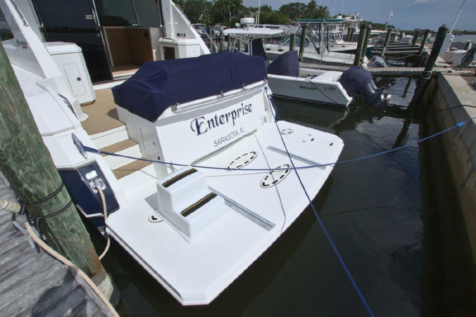 Boarding the vessel is a breeze with the huge remote controlled hydraulic swim platform that is large enough to take a tender. Entry to the cockpit is from either side through one of the 2 transom gates.