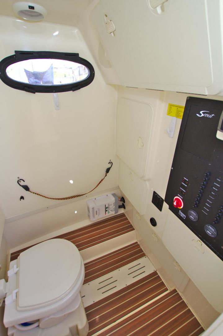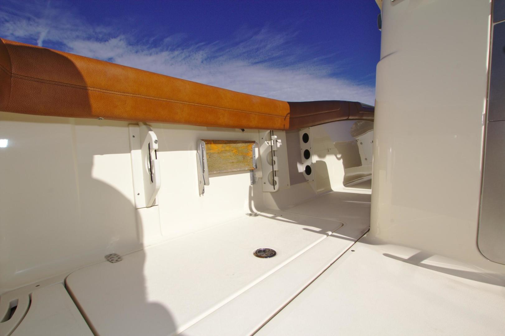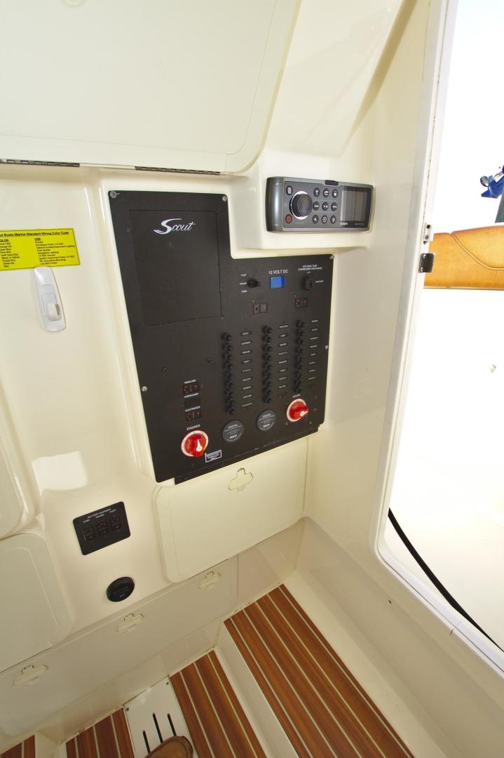 Scout is known for introducing models with market-first innovations that separate our models from the competition, and the 275 LXF is no exception. One interesting feature is the wave gate/fold down stern seat that folds down all the way to the deck floor creating easy access to the transom, swim platforms and engines. The model showcases Scout’s patented T-top/hardtop w/ tempered glass enclosure, a one-of-a-kind electronically actuated sliding electronics Plexiglas window at the helm that completely protects your electronics package, and our revolutionary Nu-V3 high performance, fuel saving hull design. The cockpit offers spacious fishing room, as well as a bait prep station w/ sink and stainless tackle drawers.