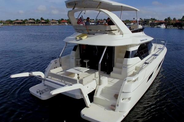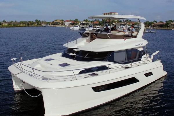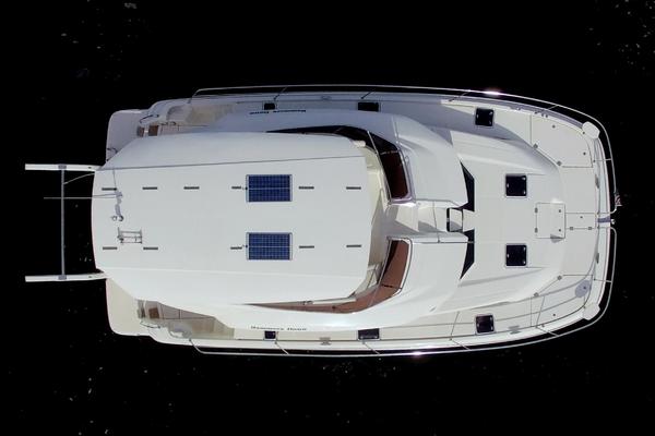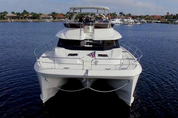 New to market! 2017 Aquila 44. A very spacious, sturdy and stable power catamaran that can reach speeds up to 20kts due to the bulbous bow. Twin Volvo D4 260hp with 700 hrs. Master on main deck with 2 additional cabins and heads. Twin Vee 12ft Dingy. 3000w inverter. Full Raymarine electronics pkg. 12kW Fisher Pander generator with 250hrs.