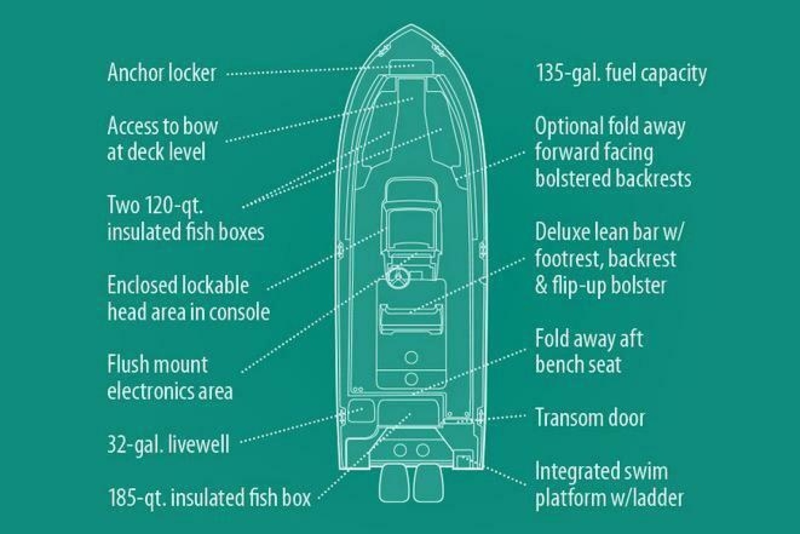 - Expansive fishing setup – livewell, rod holders, fish boxes