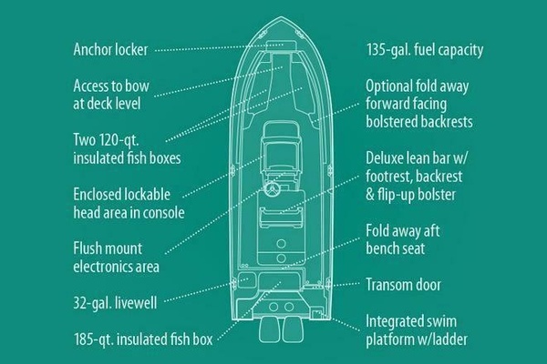 From the moment you step aboard, you’ll notice the premium craftsmanship. The wide beam and deep-V hull provide unmatched stability and comfort, even in choppy conditions. The spacious cockpit is designed with anglers in mind—featuring ample rod storage, insulated fish boxes, a large livewell, and plenty of room to fight and land your catch.